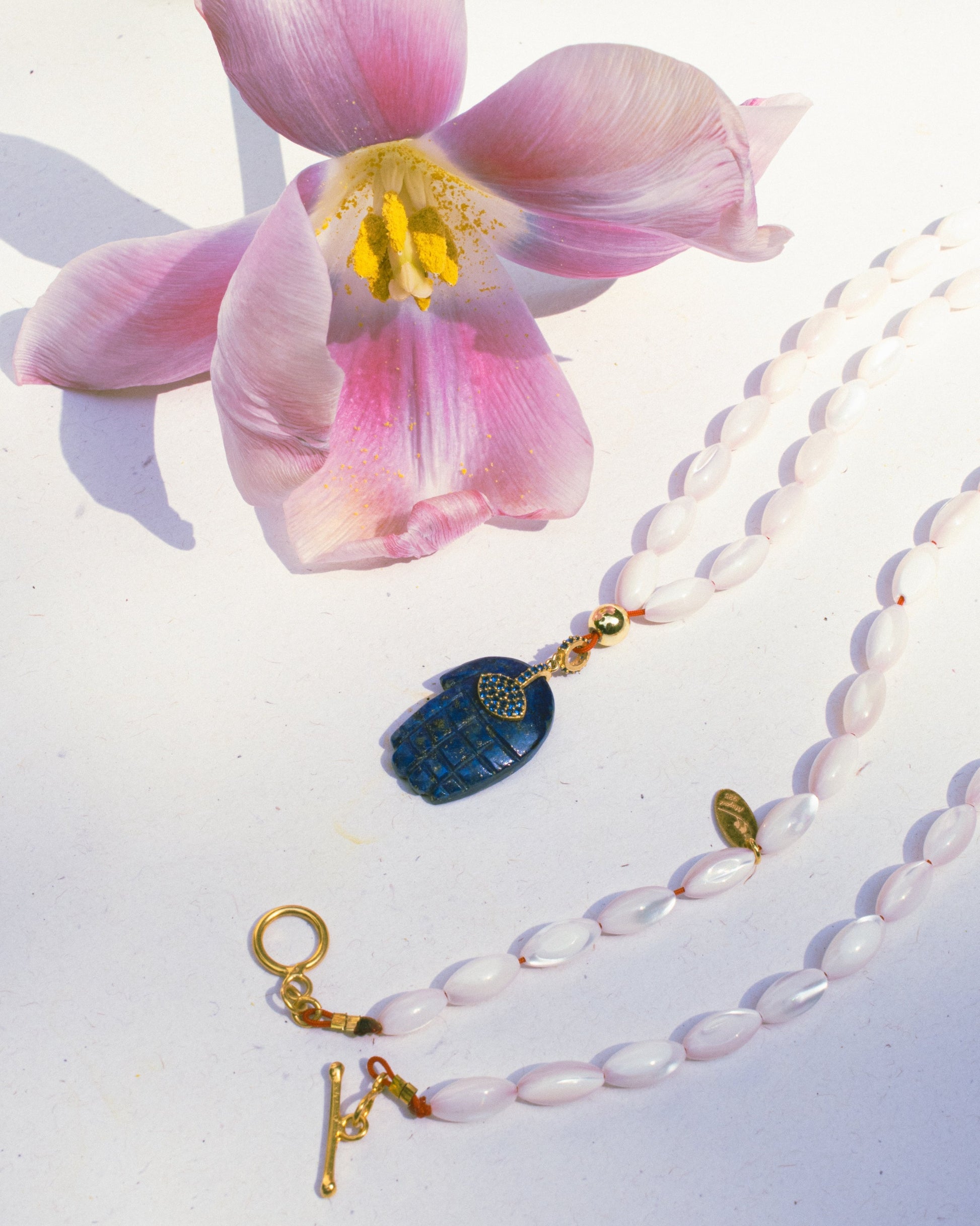 - Arpa sedef ve Lapis ile 925 ayar gümüş altın kaplama kullanılarak tasarlanmıştır.